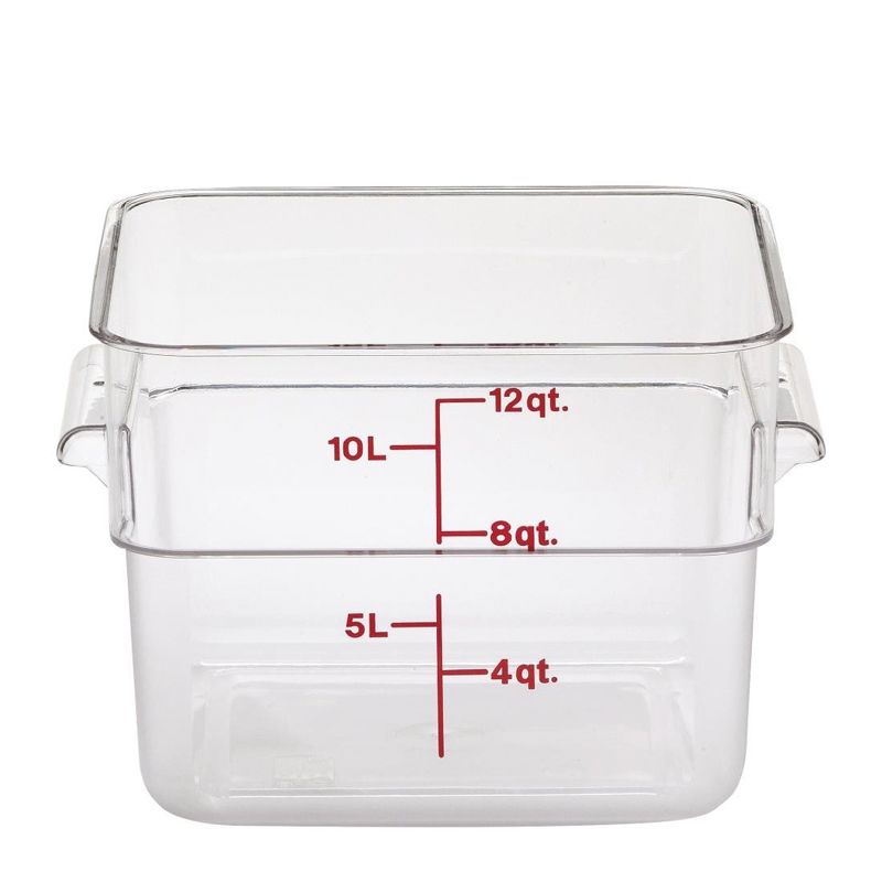 Cambro CamSquare® polycarbonate food storage containers are made with crystal clear, virtually unbreakable Camwear polycarbonate for maximum reliability. The square shape provides 33% better space usage than traditional round containers.
