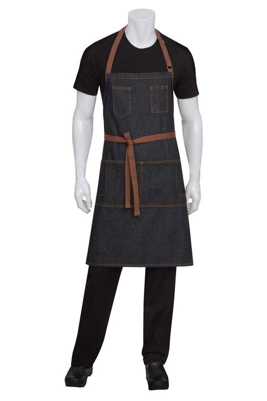 This apron features a tough denim look with the soft feel of 100% cotton. Having an adjustable metal neck buckle and contrasting tape ties and topstitching are just a few of the features that help the Memphis Bib Apron stand out. Along with its double front pockets with cell phone divide, the criss-cross bar tacks allow the apron to be well used while maintaining its chic look. With its two utility pockets on the chest, the Memphis Bib Apron is perfect for the chef who needs to have their items close at hand and looking good while working.