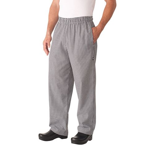 This Small Check Basic Baggy Chef Pants are made of Yarn-Dyed Poly/ Cotton fabric and have two front pockets, one back pocket andare tapered at the legs. They also come with drawstrings for tightening and have an elastic waist for comfort. A great pant to wear daily in the kitchen.