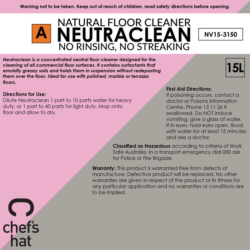 Nuetraclean is a concentrated nuetral floor cleaner designed for the cleaning of all commercial floor surfaces. It contains surfactant that emulsify greasy soils and holds them in suspension without redepositing them over the floor. Ideal for use with polished, marble or terrazzo floors.