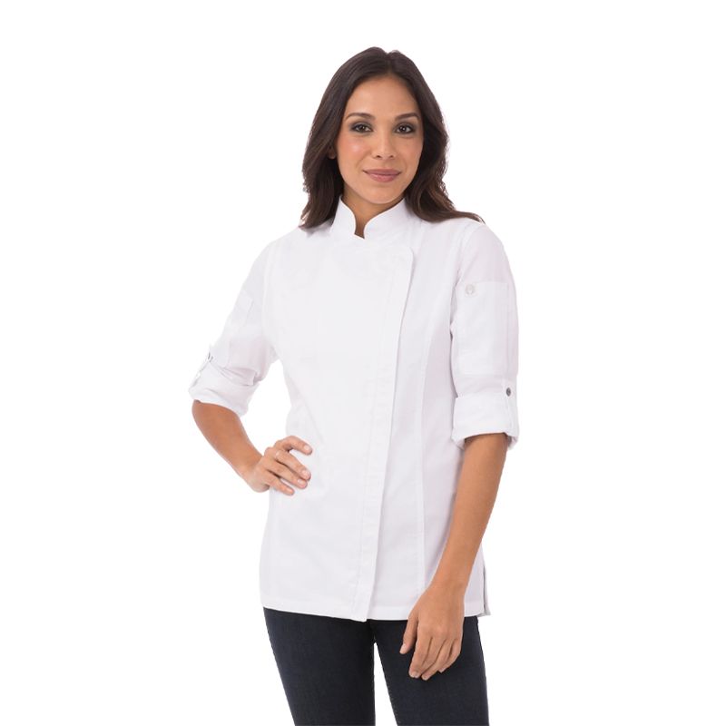 HARTFORD CHEF JACKET WHITE ZIPPER WOMENS L/XSL
