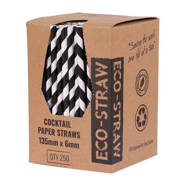 PAPER STRAW BLACK/WHITE STRIPED COCKTAIL, AUSTRAW