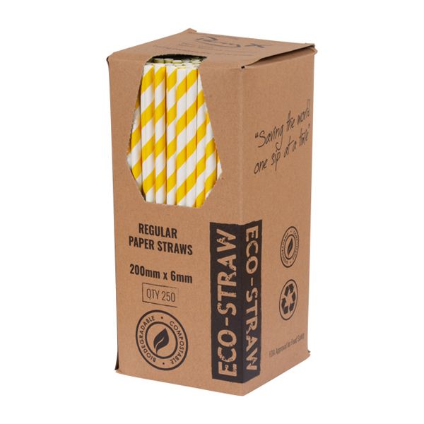 Our traditional paper straws are back in fashion because of their vibrant colours and prints. Made from a 3 ply premium food grade kraft paper, our straws hold their shape longer when submersed, over some other straws which are only 2 ply or less. Biodegradable and compostable these straws are a great choice for our environment over a plastic straw and not only look great, but are a practical choice for the eco friendly venues. Our straws come with all relevant test data for dye levels and heavy metals. Suitable for all carbonated drinks, water, fruit juice and other similar products.