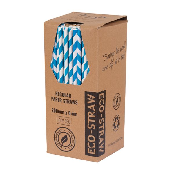 PAPER STRAW BLUE/WHITE STRIPED 205MM, AUSTRAW
