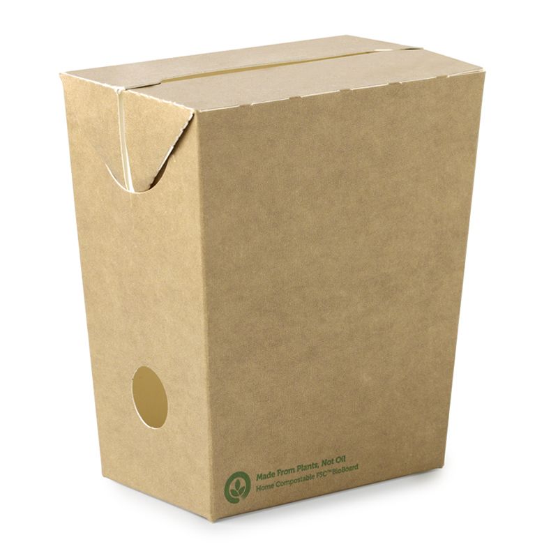 These unlined takeaway food paper containers are home compostable, industrially compostable and recyclable in kerb-side recycling, if not too soiled.