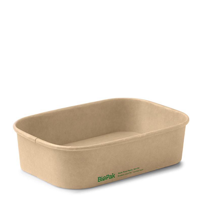 500ml Natural Rectangular Paper Containers are sustainably sourced and made from FSC™ certified paper board. They are lined with a bioplastic made from plants, not oil. These takeaway containers are perfect for hot and greasy food. Certified industrially compostable.