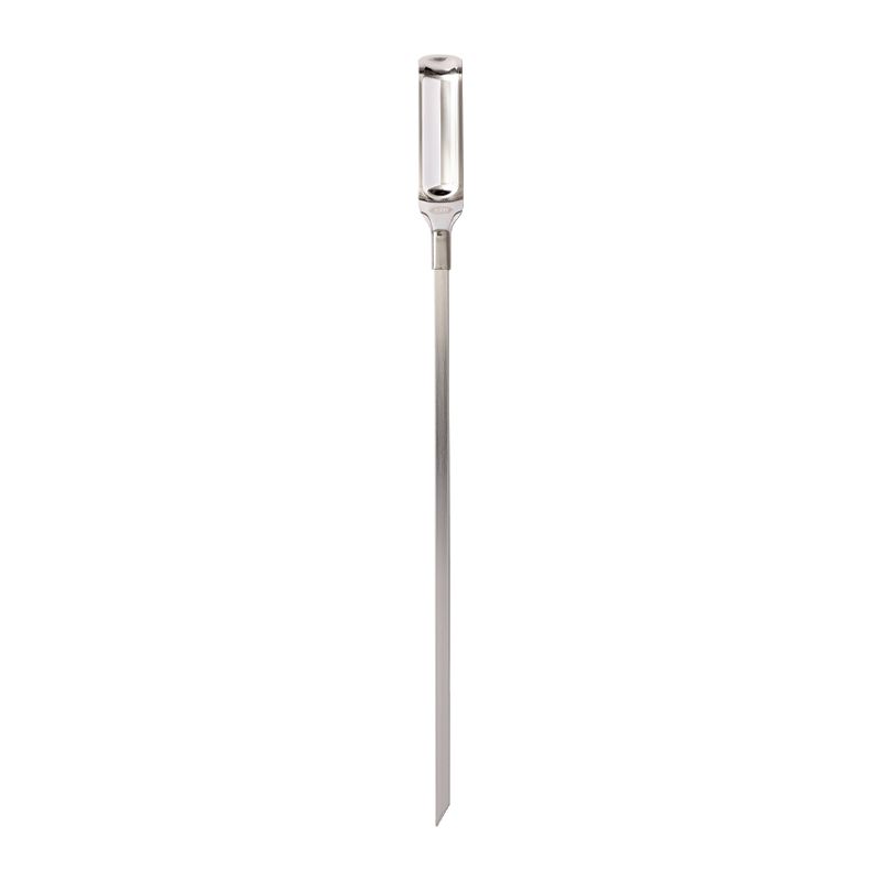 Kabobs might just be the ideal summer food, and now there's a better way to grill them to perfection. With the OXO Good Grips 6-Piece Grilling Skewers Set, ingredients slide onto the sharp points with ease, and the flat design keeps your kabobs steady as they cook. The Skewers have wide handles for fumble-free flipping with tongs, and a thumb-sized divot that for sliding cooked food onto the plate. The flat design also allows the handles nest together for neat, space-saving storage in the off-season. Dishwasher safe.