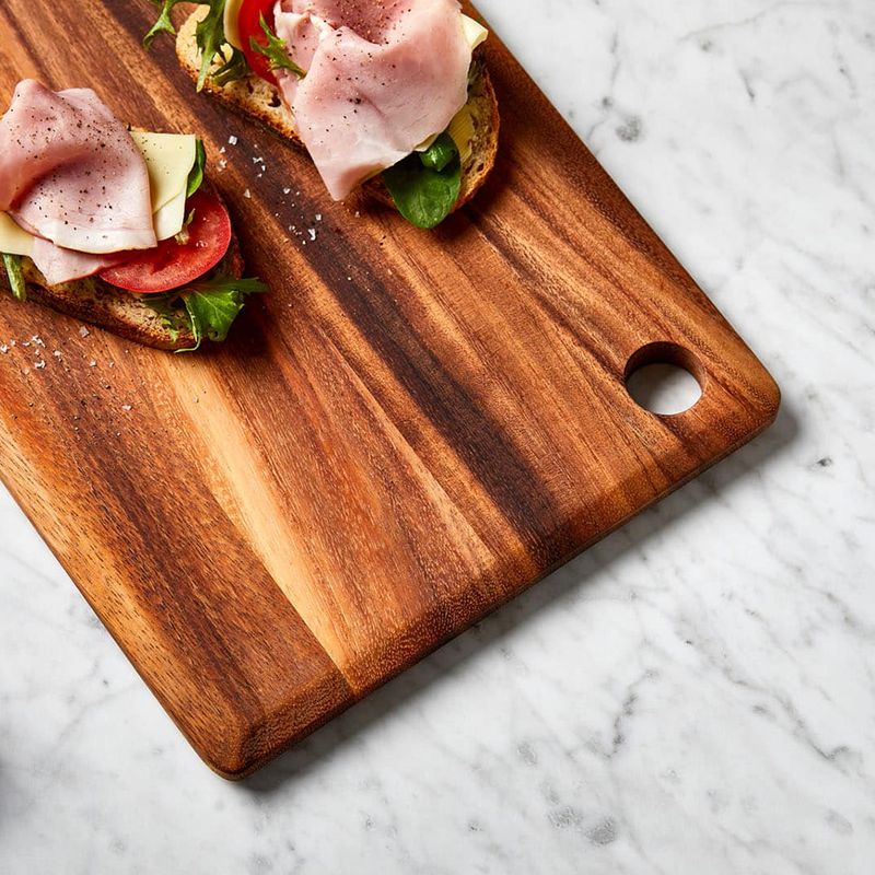 This everyday Acacia wood board is an ideal investment for your kitchen. You will love it. It’s timeless craftsmanship and contemporary design ensures it will be a staple in your kitchen for years to come. The full grain finish of this board is warm and inviting, and will age gracefully over time.